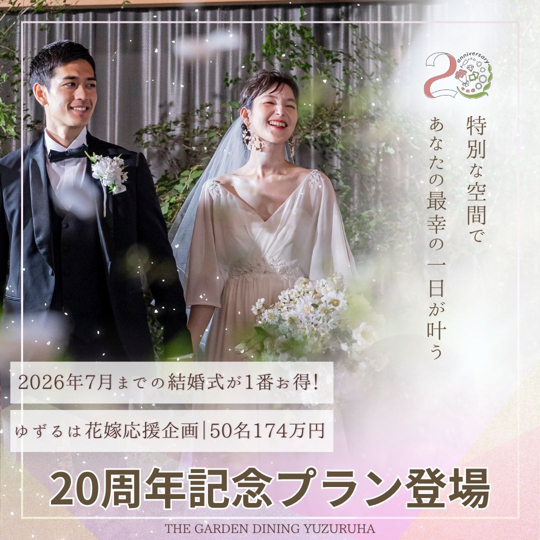 2026年7月までのご結婚式対象 ゆずるは花嫁応援企画|50名174万円*20周年記念プラン登場!