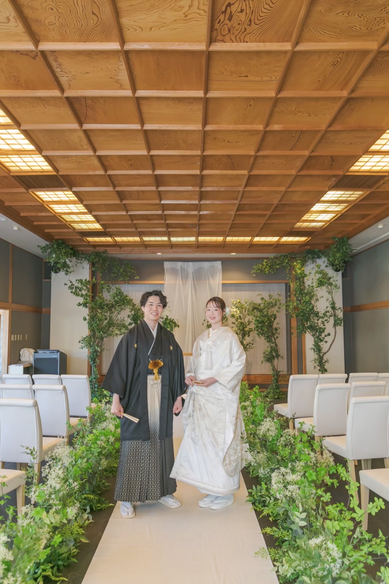庭園や和モダンの空間での挙式は、白無垢がとても映えます。