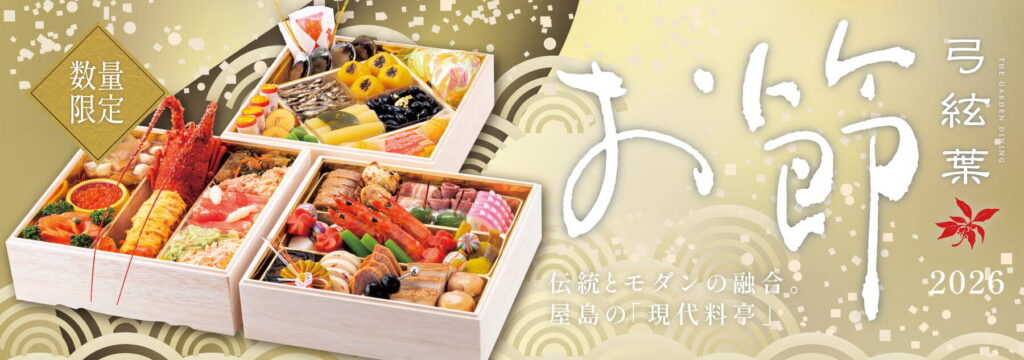弓絃葉で人気の本格懐石コース料理をお弁当にあしらいました。日本料理の極みをご堪能くださいませ。