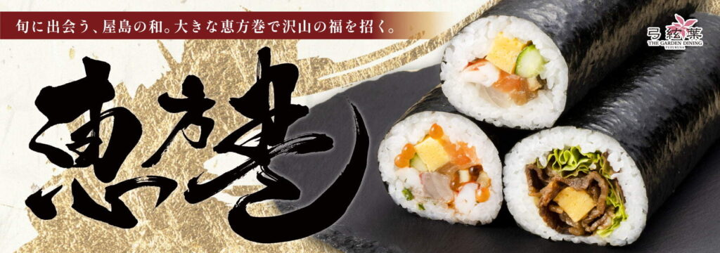 五色巻寿司(うなきゅう 海老マヨ 真鯛酢〆 蟹マヨ 新香)・香川県産鰆のネーズ焼き 香川県産若鶏香味焼き・香川県産小松菜とちりめんの煮びたし だし巻き玉子 蓮根玄米揚げ・花蒲鉾 【香川県産真鯛の南蛮漬け 彩りマリネ】 季節の炊き合わせ・牛しゃぶサラダ仕立て 季節の天婦羅 季節の甘味